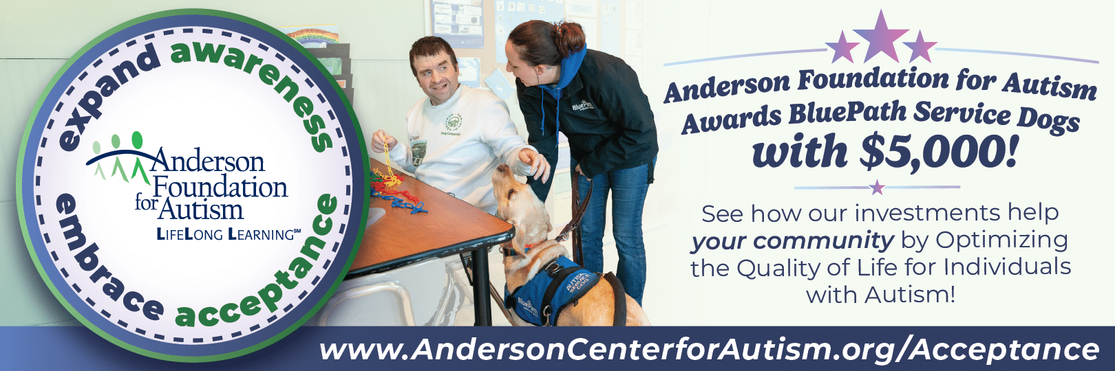 Expand Awareness and Embrace Acceptance… April is Autism Acceptance Month! Read below to learn more about autism and how to make a donation to Anderson Foundation for Autism to help us continue our mission of Optimizing the Quality of Life for individuals with autism.